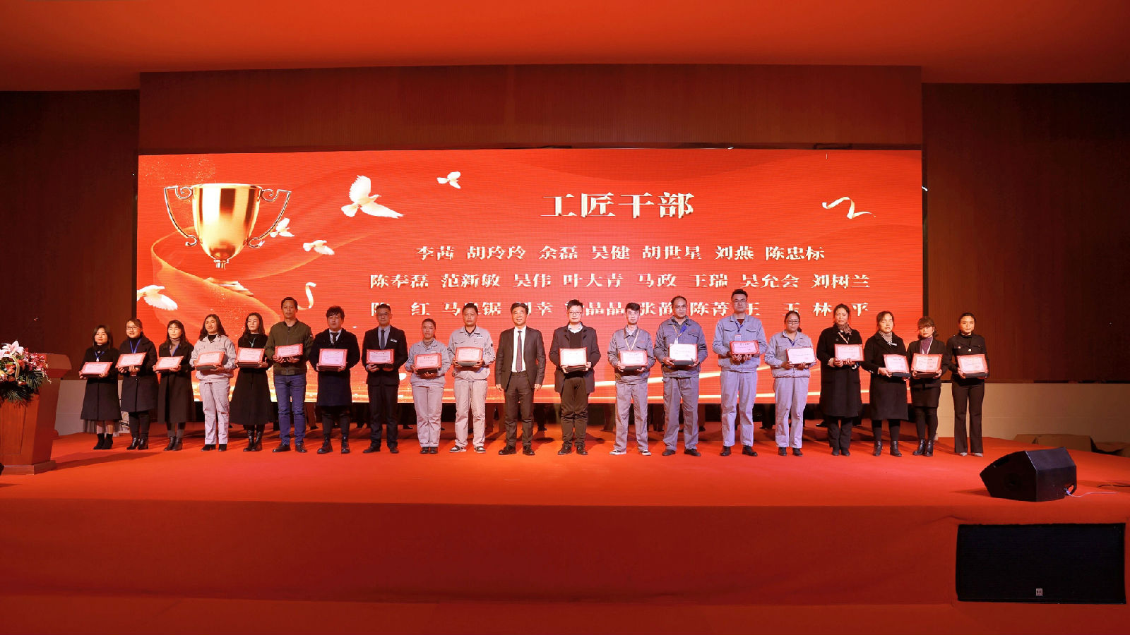 在過去一年,集團各工廠各部門干部員工埋頭苦干,揮灑汗水,為公司穩健發展做出貢獻。會上,公司對2020年評選的工匠干部工匠員工進行頒獎表彰。