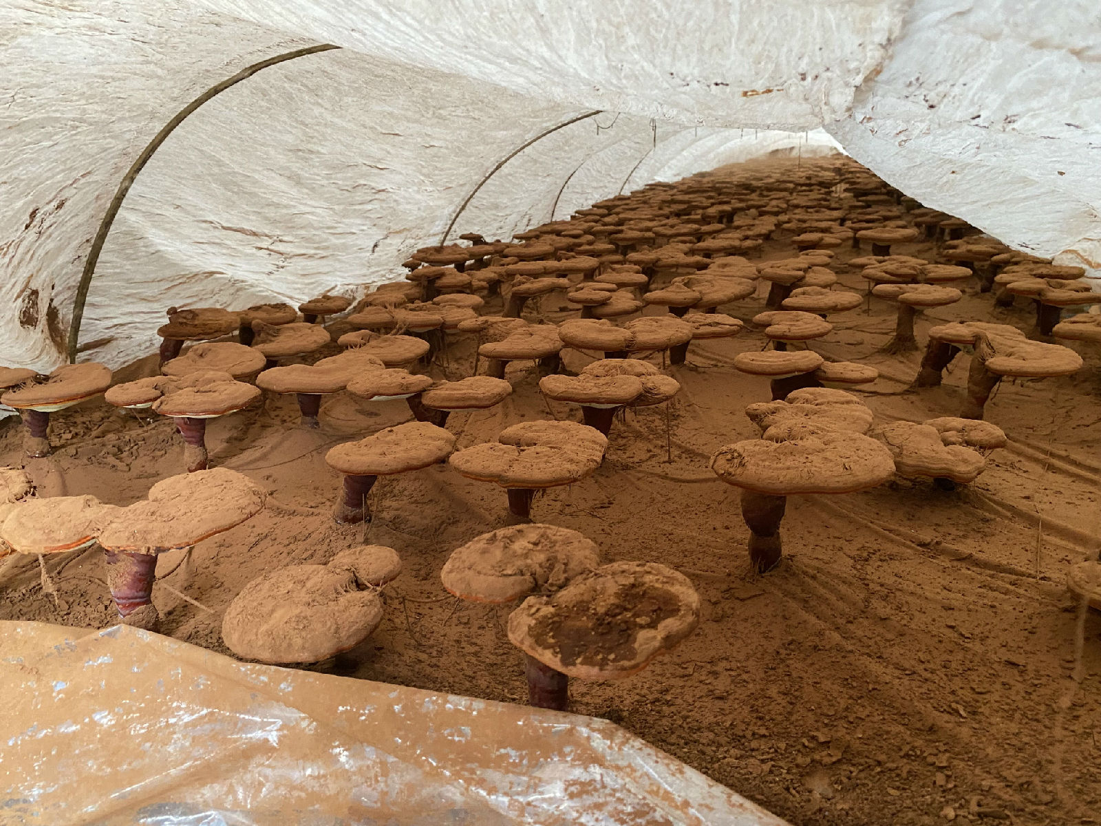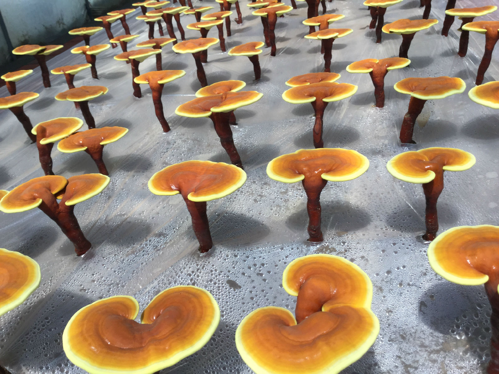 不同樹種對靈芝子實體表面色澤、生物轉化率等有明顯影響??得纴韲栏褡裱幉淖匀簧a規律,精選無毒害樹種且樹齡在10年以上的櫟樹為基質,采用仿野生椴木栽培方式,不斷優化種植方式,從而提高藥材有效成分。