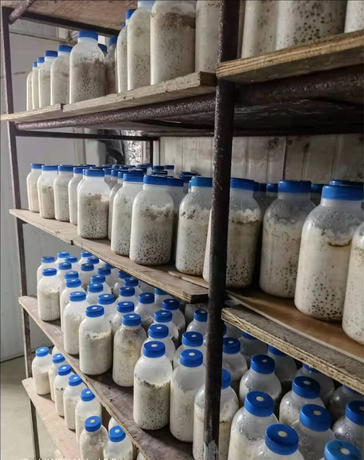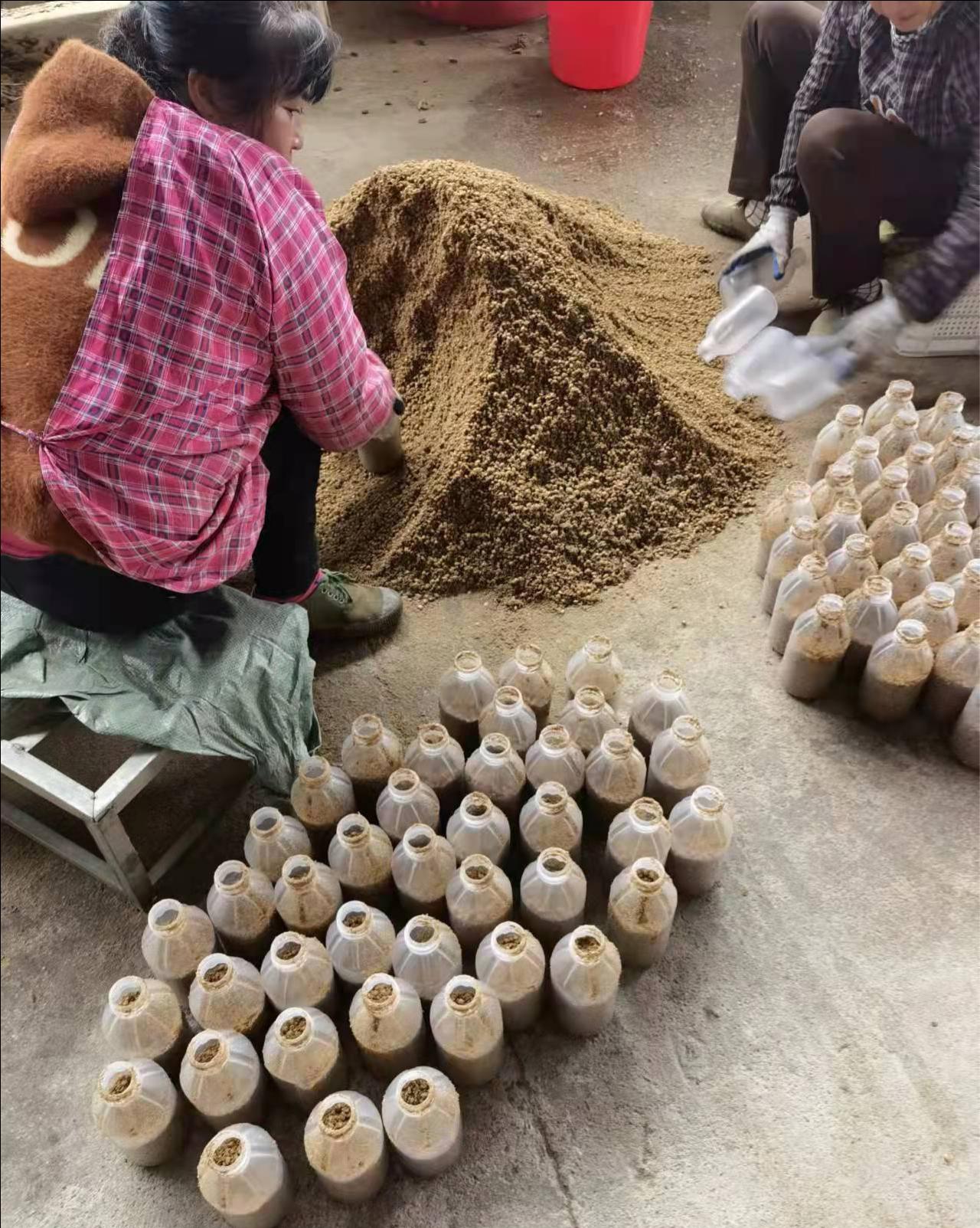 自2021年10月康美來集團下達2022年靈芝種植計劃任務后,康美來工廠菌種車間加班加點生產(chǎn)菌種,基地負責人黃總積極行動,采伐優(yōu)質樹木,招聘當?shù)剞r(nóng)民工100多人加工菌棒,高標準推進靈芝基地生產(chǎn)進度。