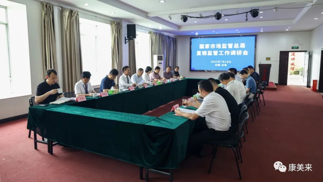7月18日下午,市場監管總局價監競爭局朱忠良副局長,市場監管總局價監競爭局二級巡視員職向陽,市場監管總局價監競爭局一級調研員李浩永,安徽省市場監管局黨組成員、副局長何漢翔,安徽省市場監管局競爭執法局局長、一級調研員鄭文寶,六安市市場監管局黨組織書記、局長、二級巡視員方厚奇,六安市市場監管局二級調研員韓勇,調研組一行親臨康美來公司調研。