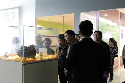 講解員向考察領導介紹公司重量級產品“桑黃子實體”