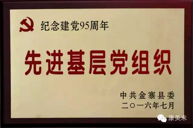 值此建黨95周年之際,中共金寨縣委授予康美來黨支部“先進基層黨組織”榮譽稱號。