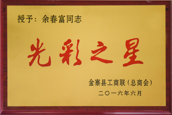 同時,縣政府有關部門為表彰先進,樹立榜樣,逐級推薦,授予余春富“光彩之星”榮譽稱號。
