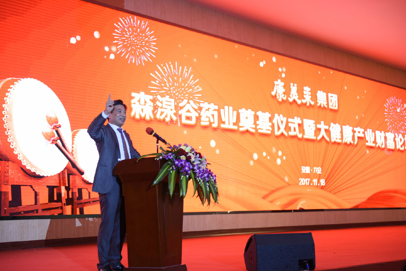 中共六安市委常委、六安市人民政府分管工業副市長束學龍出席儀式,為項目剪彩并奠基培土。參加奠基儀式并為項目剪彩奠基培土的政府部門領導還有:六安市經信委主任盧俊、六安市科技局局長武克貴、六安市食品藥品監管局局長方志龍、六安市經濟技術開發區管委會副主任孫承柱、六安市發改委副主任韓鋒、六安市工商質監局副局長趙軍。奠基儀式上,首先由康美來集團董事長余春富致辭,他表示:康美來將立足開發大別山資源,以六安開發區為核心區,連動金寨霍山,在六安地區全面布局大健康產業,為康美來會員提供更多更實惠的健康產品。森湶谷藥業將為集團總部配套建設5000平米的靈芝霍山石斛文化展示館,建設超市、酒店等配套對外開放生活區。