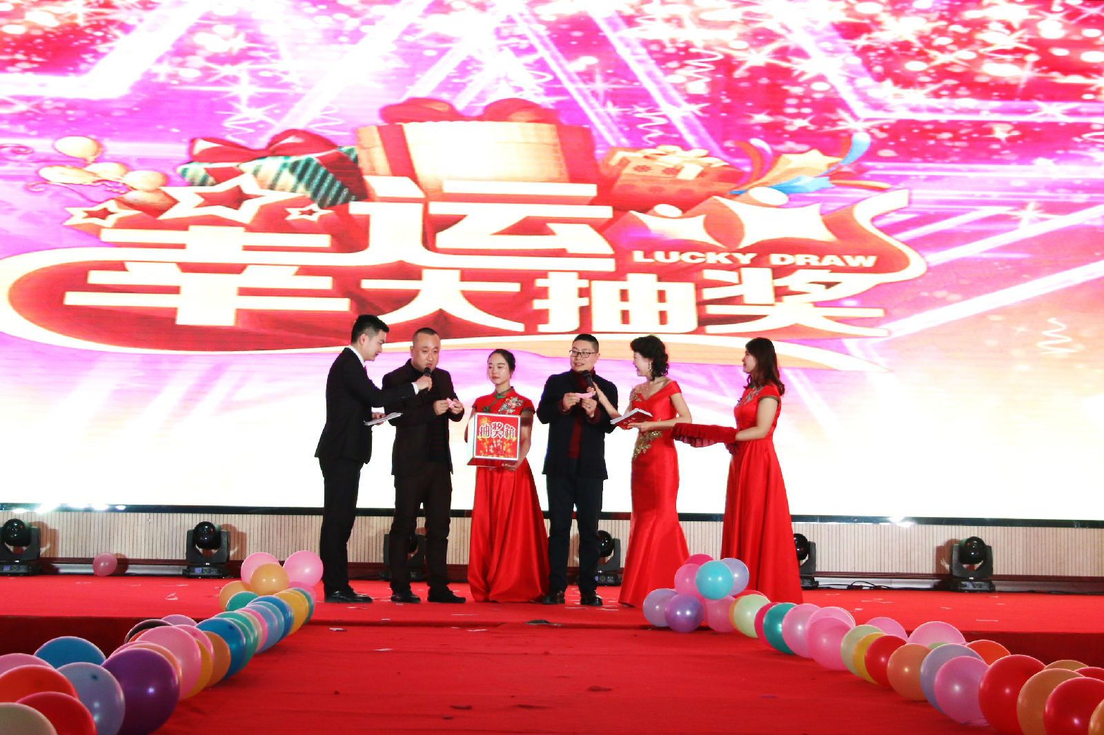 現場一輪一輪的抽獎也讓晚會高潮不斷,驚喜不斷。60名幸運獎,30名三等獎,10名二等獎,5名1等獎,1名特等獎,總計106名家人收獲了公司的幸運獎。