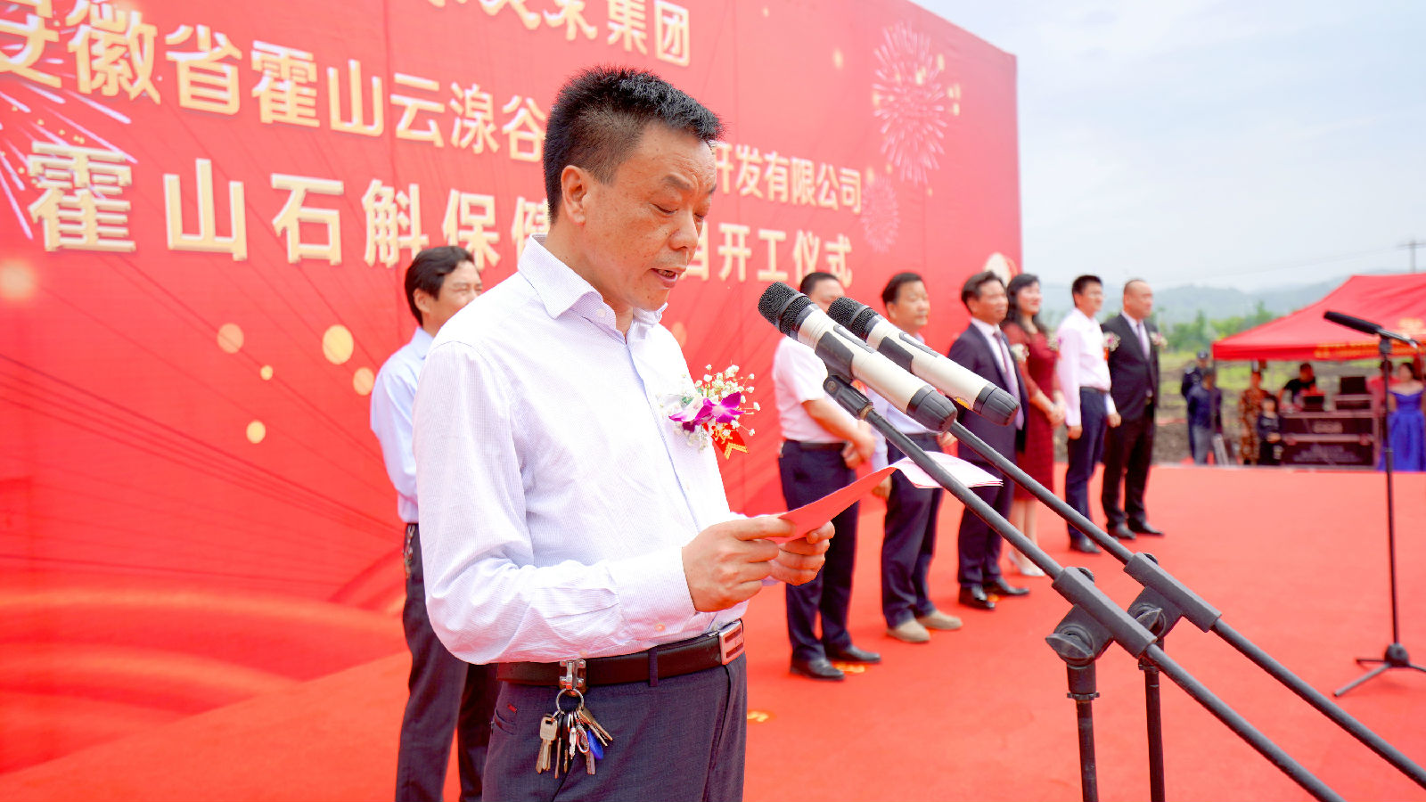 霍山縣委常委、統(tǒng)戰(zhàn)部長華心揚宣布項目開工。參加項目開工儀式的還有六安市財政局副局長費小松,霍山縣人民政府副縣長劉東及政府各部門負(fù)責(zé)人。