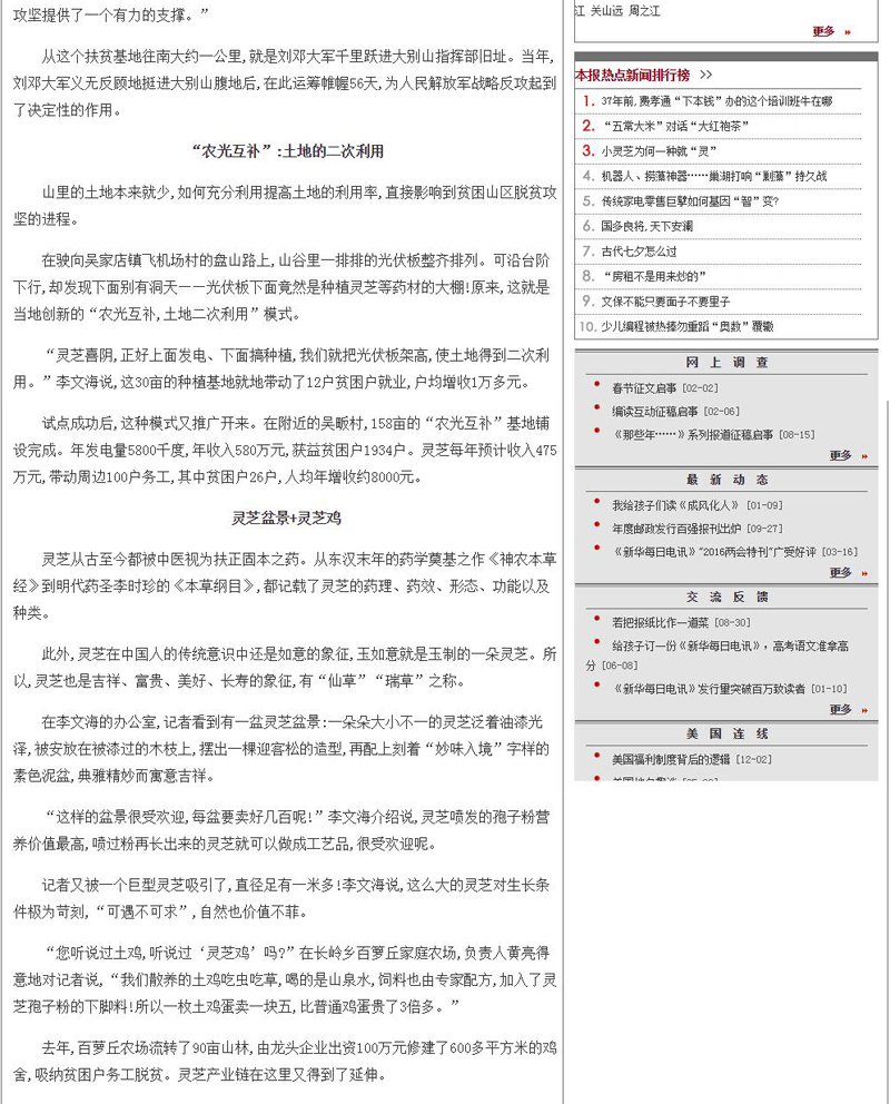 8月17日,新華社旗下平面報紙《新華每日電訊》主版刊發“小靈芝為何一種就靈”的記者文章,報道康美來公司大別山靈芝基地產業精準扶貧模式。