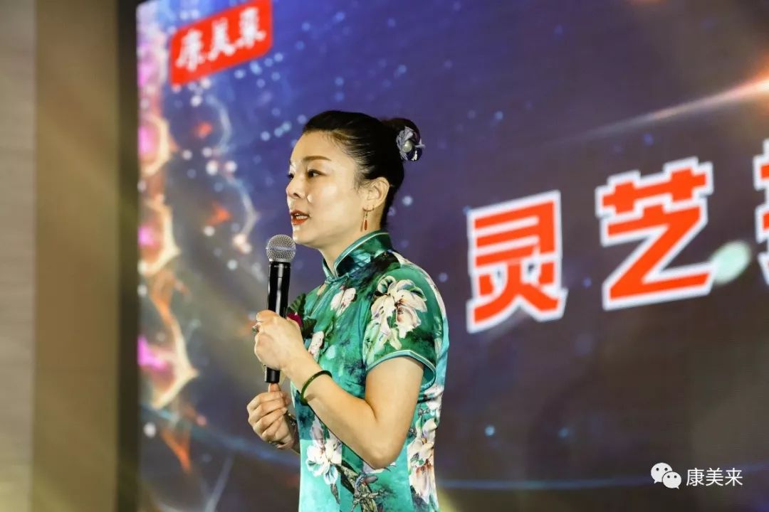香港著名影星凍齡女神溫碧霞在禮儀小姐的引領下,閃亮登場,她首先為大家演唱“月亮代表我的心”,而后接受主持人的采訪,表示自己的美容秘訣是每天精心護膚,且愛用天然本草化妝品,不傷肌膚,透肌美顏效果好。