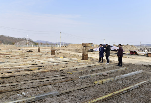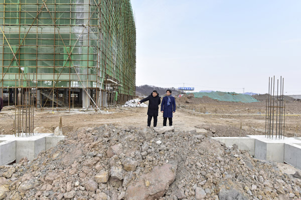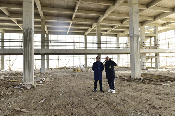 在倉儲車間廠房工地,余董對工程質量表示滿意,他說:“我們要對下一代人負責,一定要堅固,防震防水,依法依規建筑廠房。”