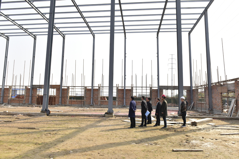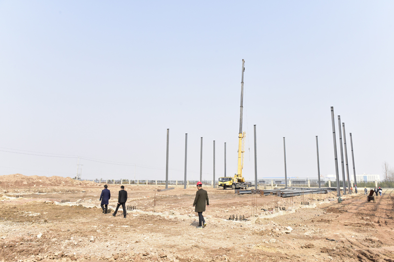 目前三棟鋼結構廠房正在抓緊施工,其中保健食品車間和有機米及土雞蛋加工車間廠房已經完成主體吊裝,倉儲車間正在吊裝主體鋼架。