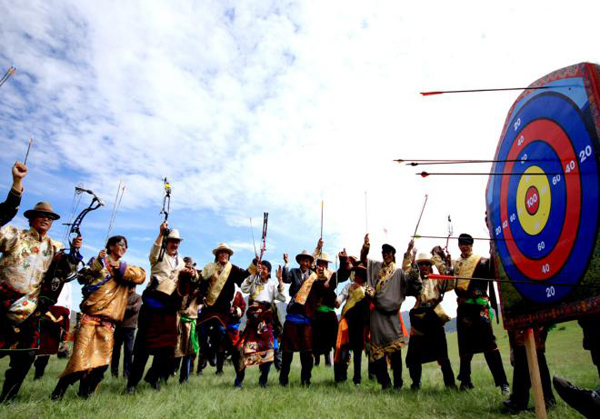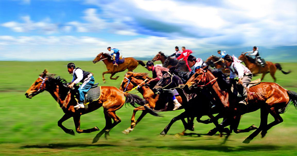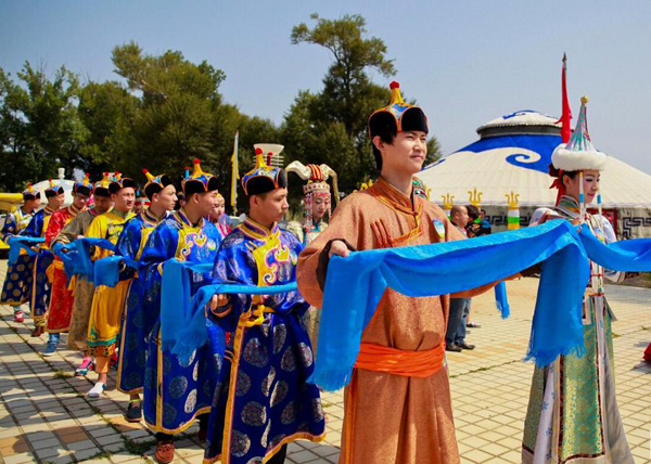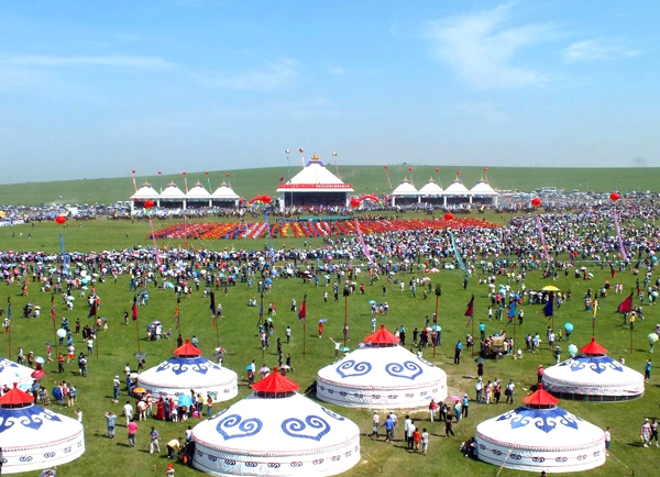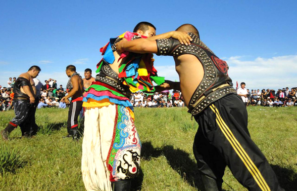 在希拉穆仁草原,每年都要舉行盛大的草原那達(dá)慕活動(dòng),其中的賽馬、摔跤和射箭三項(xiàng)競(jìng)技是蒙古族“男兒三藝”。