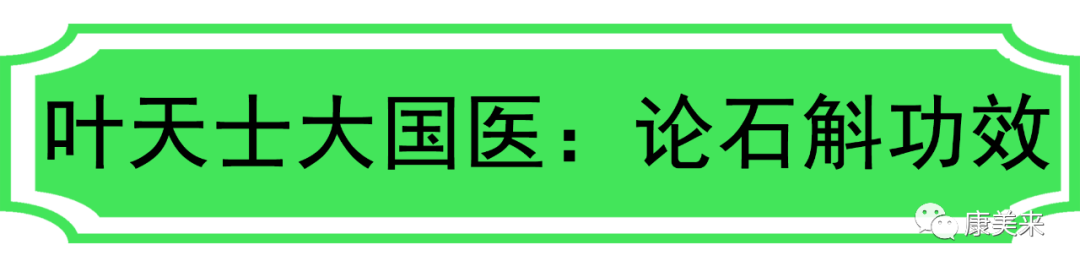 清代大國醫葉天士曰:石斛氣平入肺,味甘無毒入脾。甘平為金土之氣味,入足陽明胃、手陽明大腸。陰者,中之守也;陰虛則傷中。甘平益陰,故主傷中。痹者,脾病也;風、寒、濕三氣而脾先受之,石斛甘能補脾,故能除痹。上氣,肺病也;火氣上逆則為氣喘者,石斛平能清肺,故能下氣。五臟皆屬于陰,而脾名至陰,為五臟之主;石斛補脾而蔭及五臟,則五臟之虛勞自復,而肌肉之消瘦自生矣。陰者,宗筋也;精足則陰自強。精者,陰氣之精華也;納谷多而精自儲。腸者,手陽明大腸也;胃者,足陽明胃也。陰陽屬燥金,久服甘平清潤,則陽明不燥,而厚腸胃矣。