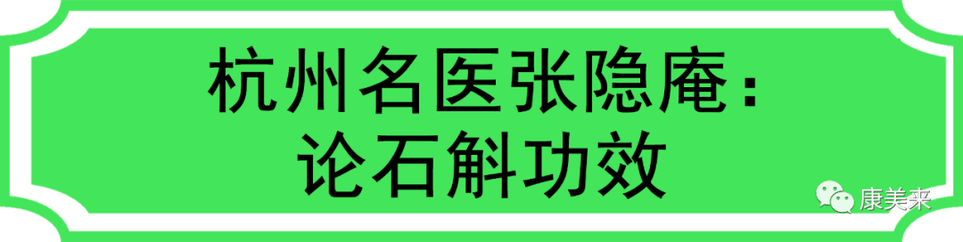 清代杭州名醫張隱庵曰:石斛生于石上,得水長生,是稟水石之專精而補腎。味甘色黃,不假土力,是奪中土之氣化而補脾。斛乃量名,主出主入,能運行中土之氣而愈諸病也。