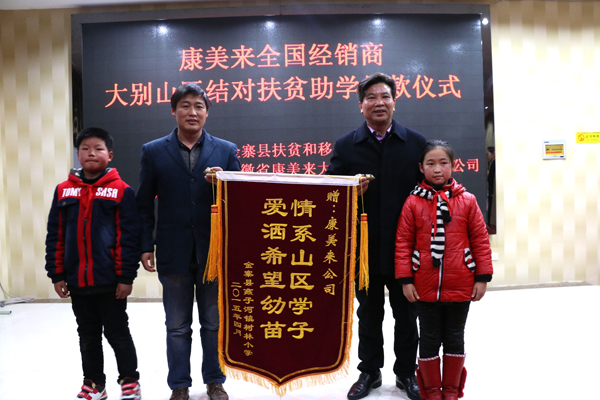 捐助儀式上,燕子河樹林小學(xué)的師生代表為康美來(lái)公司贈(zèng)送了“情系山區(qū)學(xué)子,愛灑希望幼苗”的錦旗。