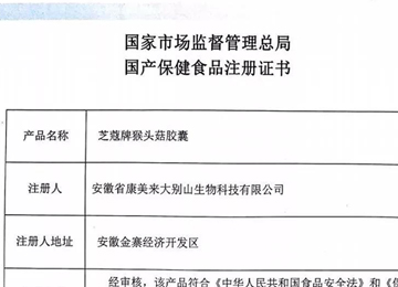 康美來芝蔻牌猴頭菇膠囊獲批國產保健食品批件