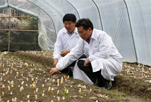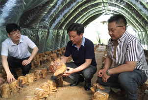 金寨縣農發委領導及產業中心負責人一行視察指導康美來有機靈芝種植基地